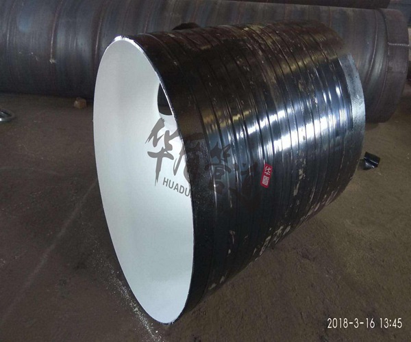 高密度聚乙烯外套防腐結構:在彎頭外表面包裹高密度聚乙烯材料制成,具有極高的機械強度和優良的耐腐蝕性能,可以保護彎e799bee5baa6e4b893e5b19e31333363373061頭在運輸、安裝及使用過程中避免因外界因素而造成的破壞。制造外套管應添加抗氧劑、紫外線穩定劑和碳黑等。聚乙烯外套管易老化,如露天存放宜用篷布等物遮蓋,堆放處應遠離高熱源和火源,制成防腐彎頭后,禁止暴曬、驟冷,否則聚乙烯外套管易開裂,影響產品性能和使用壽命。