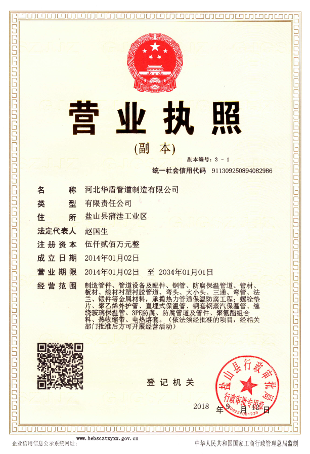 河北華盾管道制造有限公司,坐落于“中國管道裝備制造基地“—鹽山。地處河北省東部,東臨渤海灣,緊靠黃驊大港,北依京津,南接山東,隨著京津冀一體化進程的實現,屬北京一小時經濟圈,交通十分便利,地理位置優越。